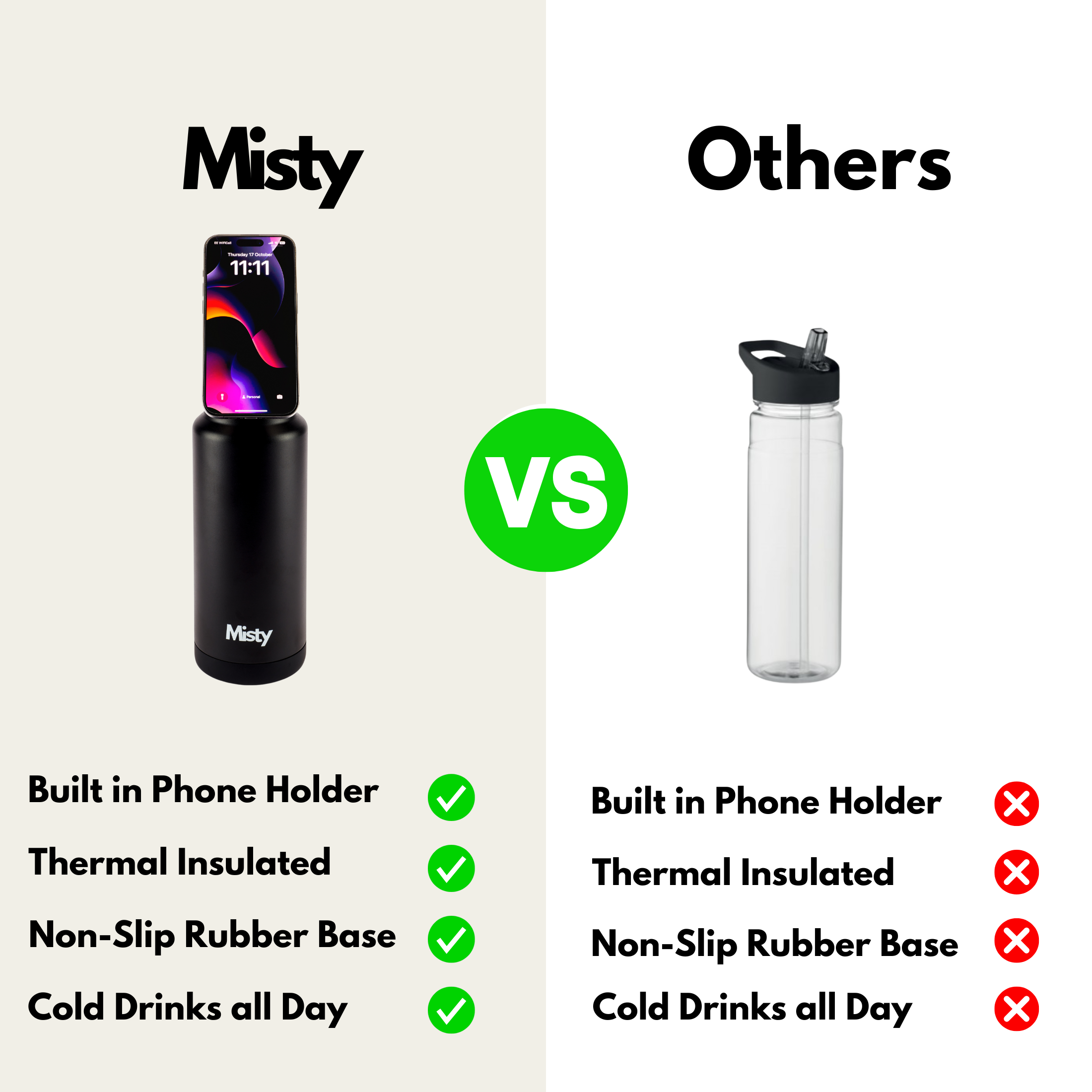 This bottle isn’t just about keeping you hydrated, it’s about keeping you focused. With a built-in phone holder, Misty lets you sip and stay connected effortlessly. No more juggling between your essentials!